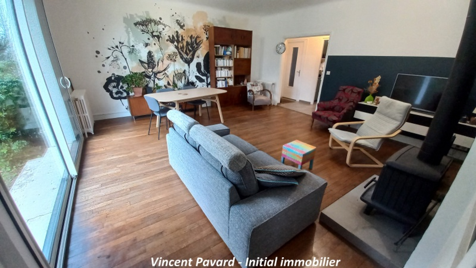 Elle vous propose une entrée, un séjour/salle-à-manger (poêle à bois) de 30m² avec baie vitrée donnant sur le jardin, cuisine aménagée de 7,5m², trois chambres (10,8 / 10,7 et 12,5m²), salle-d’eau, WC. Bureau indépendant avec lavabo/WC, sous-sol enterré avec buanderie/chaufferie, cave et pièce de rangement. Le tout sur un joli terrain arboré sur 2 niveaux de 1040m²... A saisir de suite !!!