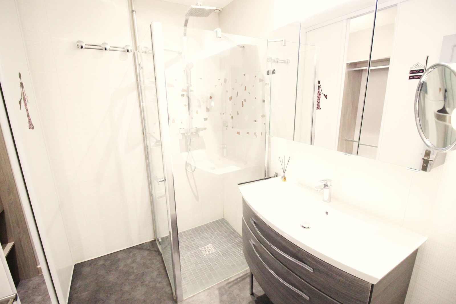 Le second espace nuit se compose de deux chambres avec placards, une salle d'eau avec rangements, un toilette suspendu et un dégagement avec placards.