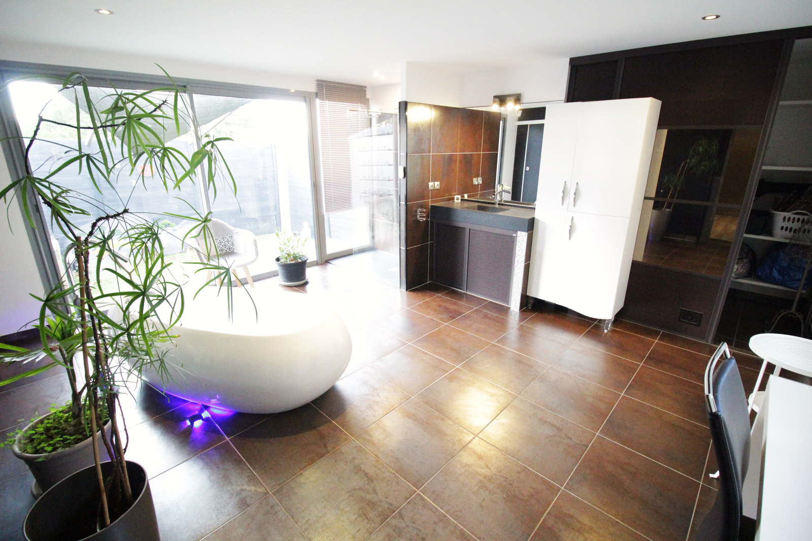 L'espace nuit se trouve de part et d'autre du séjour avec d'un côté : une belle suite parentale qui comprend la chambre d'environ 15,4 m2, une salle de bains avec baignoire, douche à l'italienne, coiffeuse, un toilette suspendu indépendant et un beau dressing.