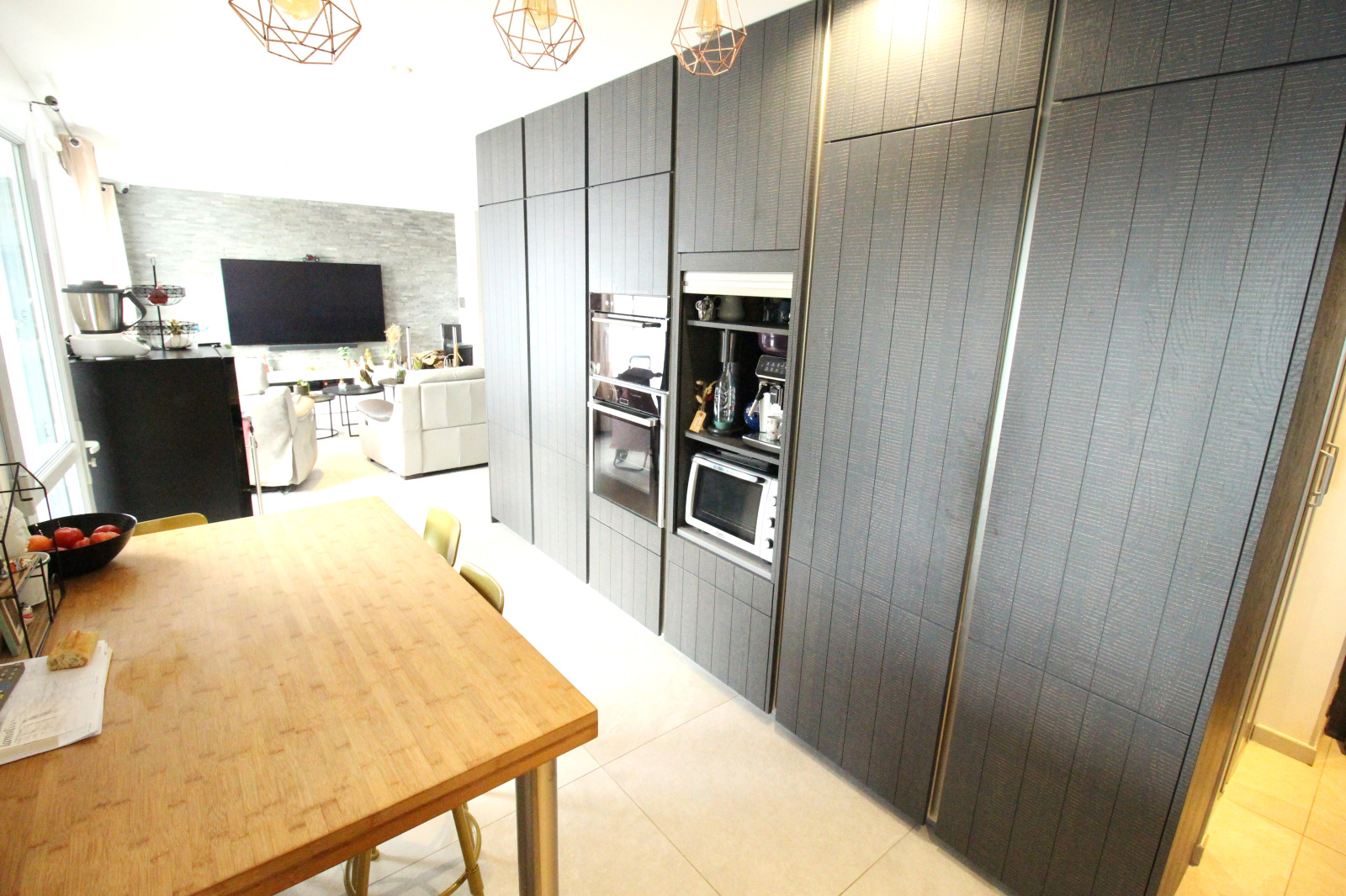 En prolongement, vous bénéficierez d'une belle cuisine aménagée et équipée, avec un coin cellier.