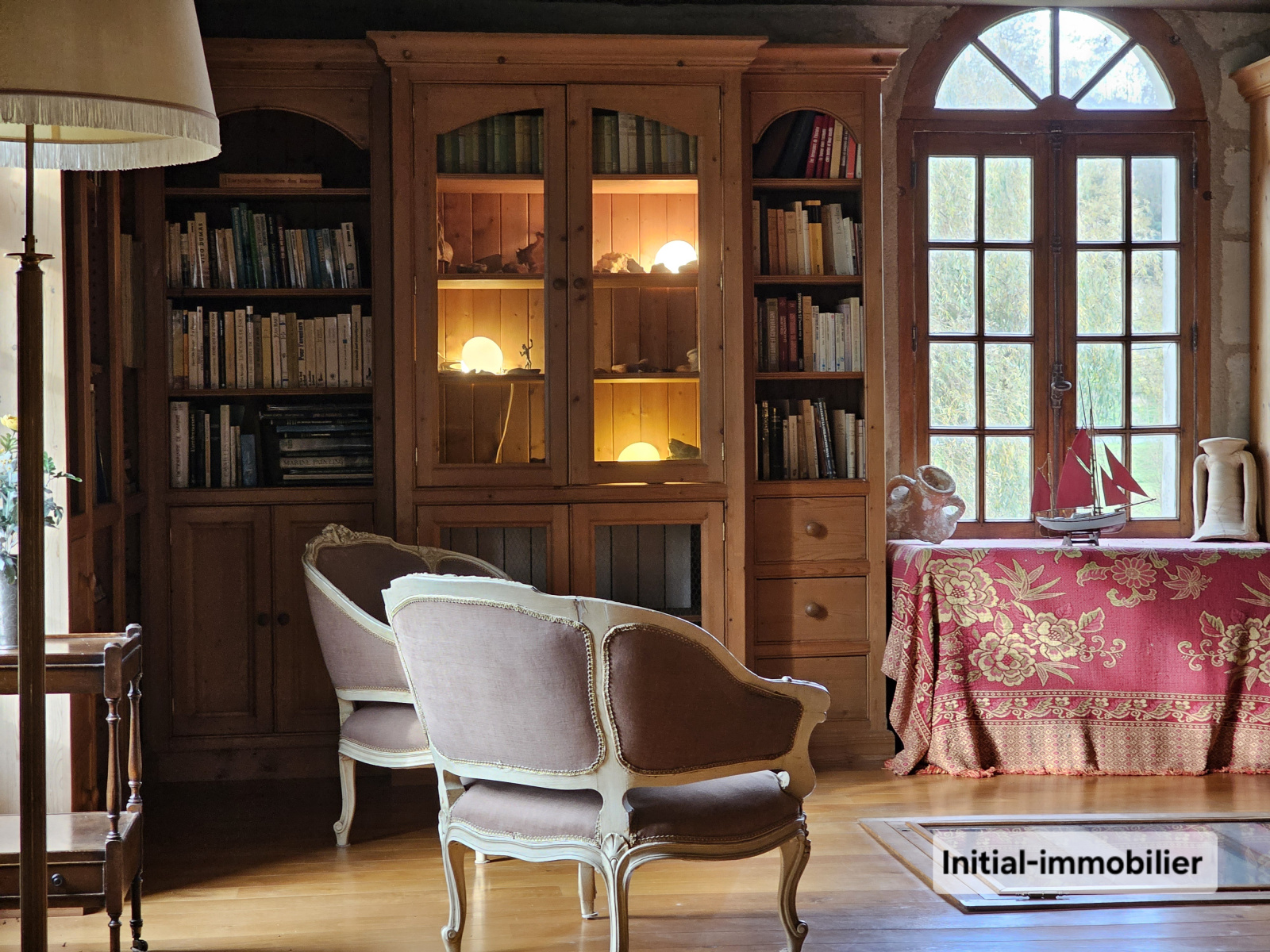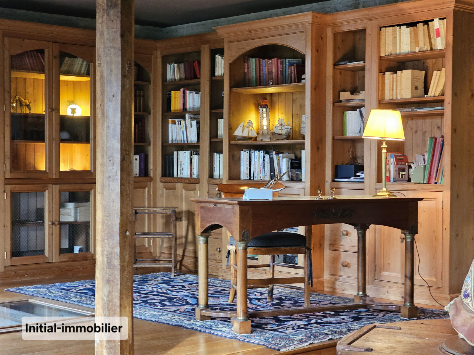 Superbe coin bibliothèque réalisé en bois noble, véritable espace de contemplation