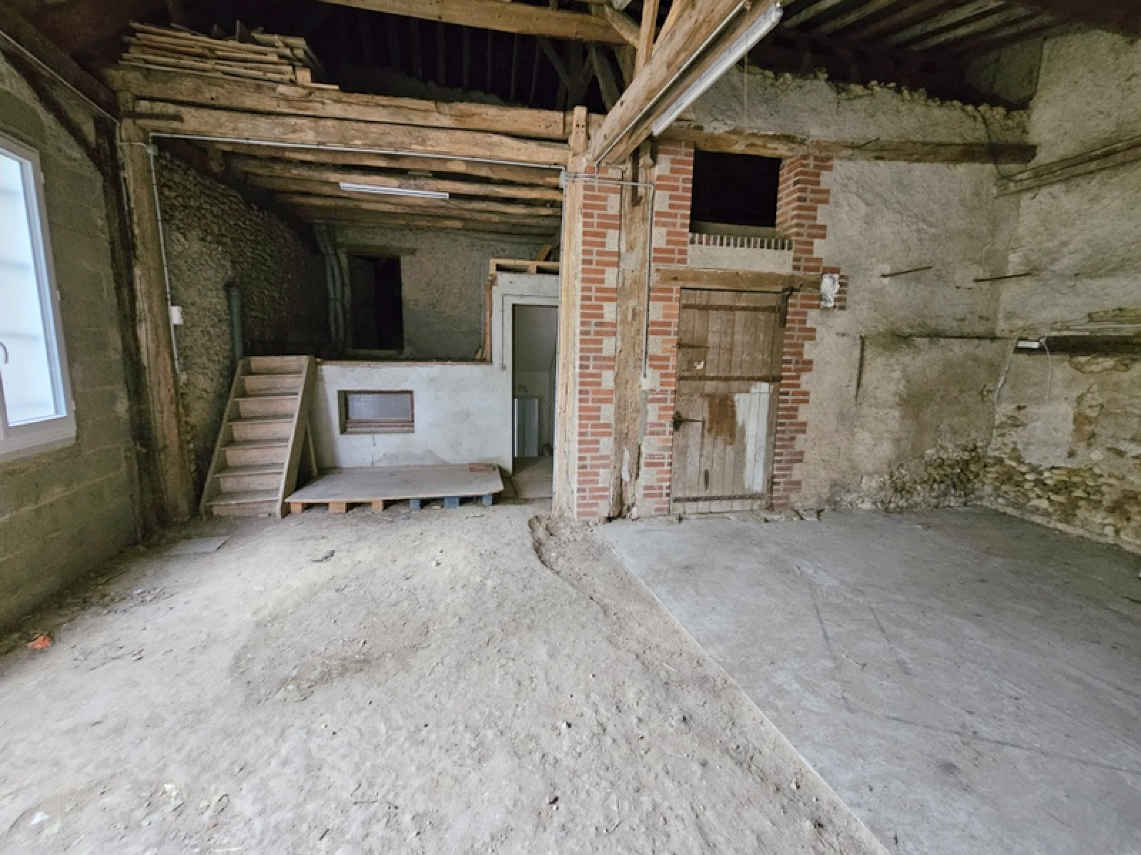 Le bien se compose d'un salon / salle-à-manger de 20m² avec poêle à granulés, cuisine dînatoire de 13,2m² (possibilité de faire une grande pièce principale car simple cloison à abattre), une cave ; à l'étage deux chambres dont une de 13m² (avec placard) et une de 20m², une salle d'eau, un WC. Une grange avec accès indépendant composé d'un garage de 36m², une pièce atelier de 20m², pièces intermédiaires de 3m² et 9m² et deux grenier de 14m² habitables chacun.